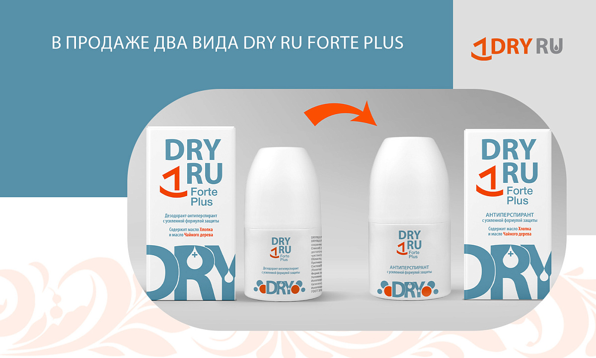 Дорогие друзья! У нас небольшие изменения во внешнем вида флакона и картонной коробочки DRY RU Forte Plus. При этом обращаем ваше внимание, что рецептура, свойства и характеристики продукта остались без изменений.