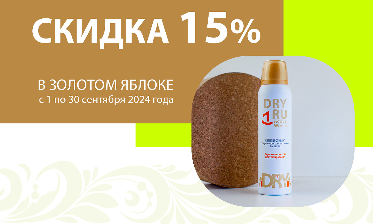 Друзья! Весь сентябрь в Золотом Яблоке скидки на продукцию DRY RU. Приглашаем приобрести отличные средства по замечательной цене!
